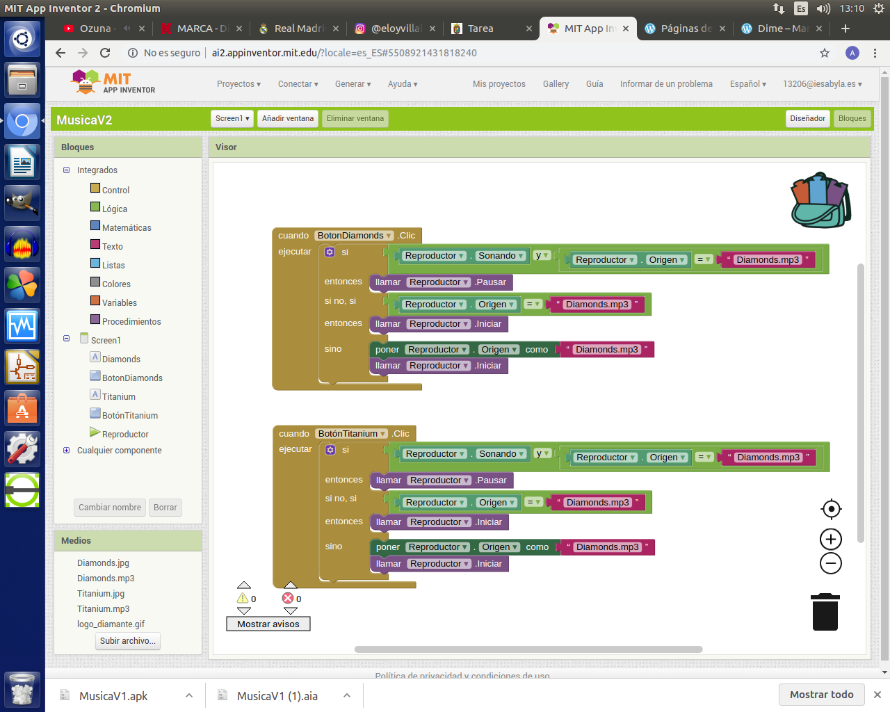 Una pagina que se crea con la ya nombrada aplicación de Mit App Inventor, y que sirve para poner que se escuche algo y se pueda reproducir en la aplicación